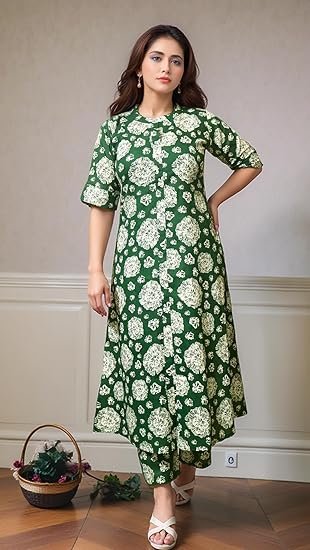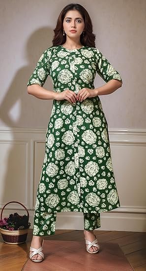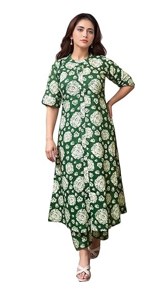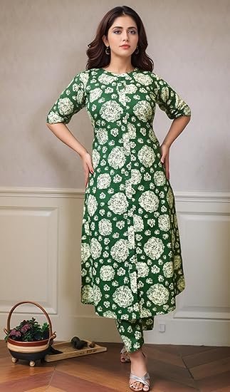 - Style: A-Line || Length: Calf Length || Sleeves: 3/4 Sleeves || Size Chart- Kurta-S-36 in, M-38 in , L-40 in , XL-42 in , XXL-44 in,Pant :- S-28 in, M-30 in , L-32 in, XL- 34 in , XXL- 36 in,For More Please refer to the size Chart below.