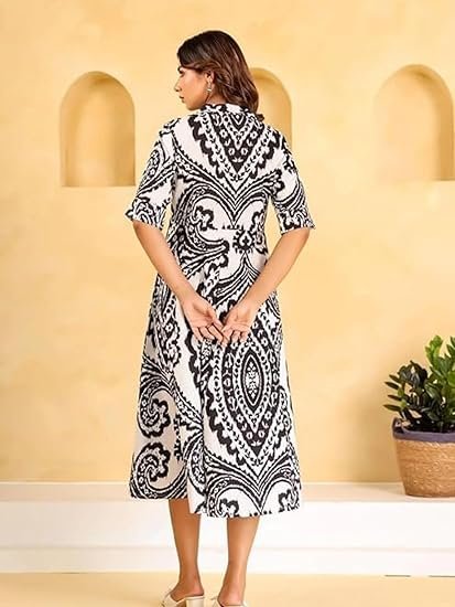 - Style & Length: This birthday dress for women in a western wear style has a chic midi length with a front open collar and button-down design, making it a sophisticated dress for women stylish enough for any occasion.