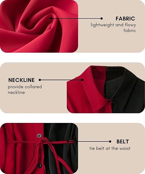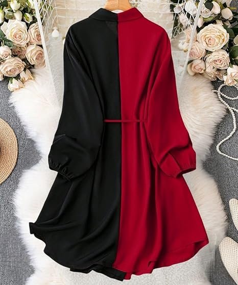 Leriya Fashion Women’s Colorblock Shirt Dress | Long Sleeve Belted Tunic | Stylish Casual Wear
