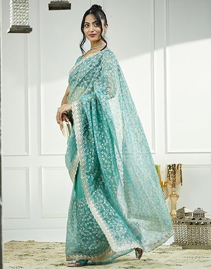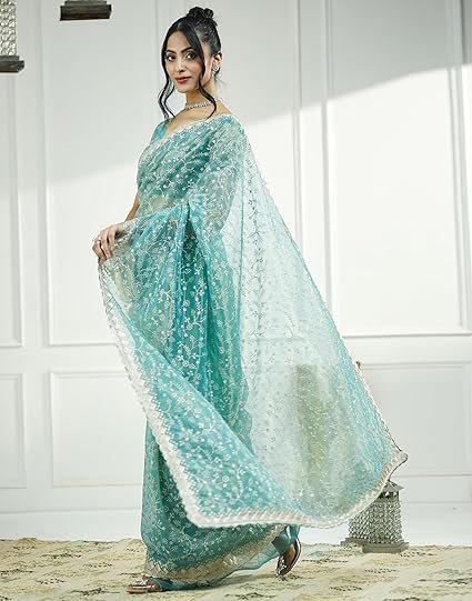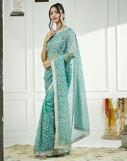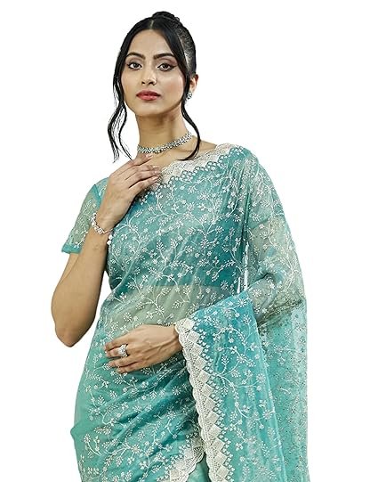 omen’s Shimmer Net Embroidery Stone Work Saree