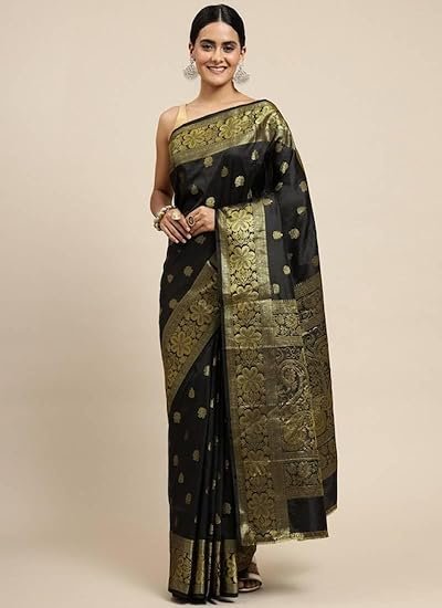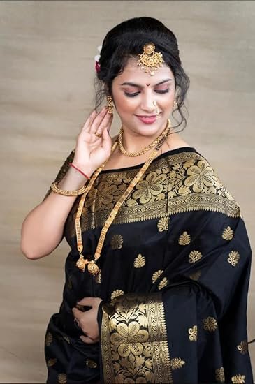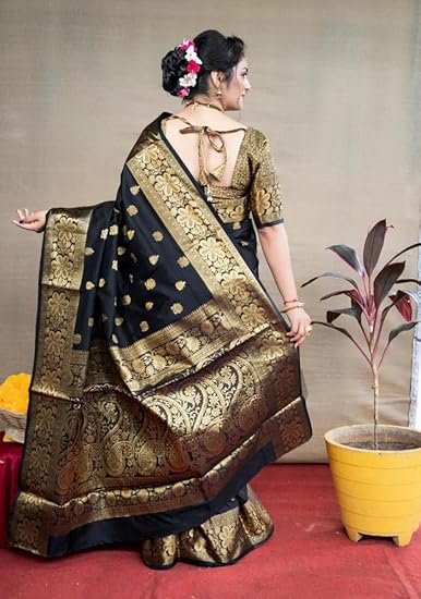 • Authentic Banarasi Craftsmanship:Handwoven in Varanasi, this saree showcases the rich heritage of Indian textiles. The intricate gold zari work reflects centuries of weaving tradition, making it a timeless addition to your wardrobe.